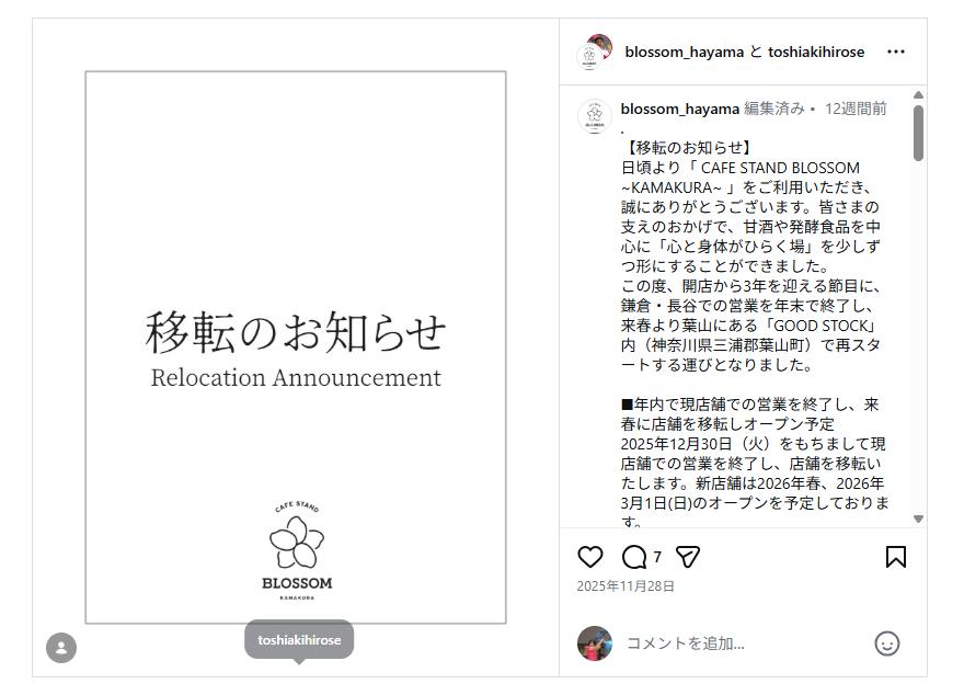 悲報:ブロッサムさんは閉店してしまいました。です。が、葉山に新店舗をオープンしています。葉山は鎌倉から近いようで遠い。距離的には近いのですが、道が一本でしかも渋滞しがち。でも廣瀬さん、がんばれ~